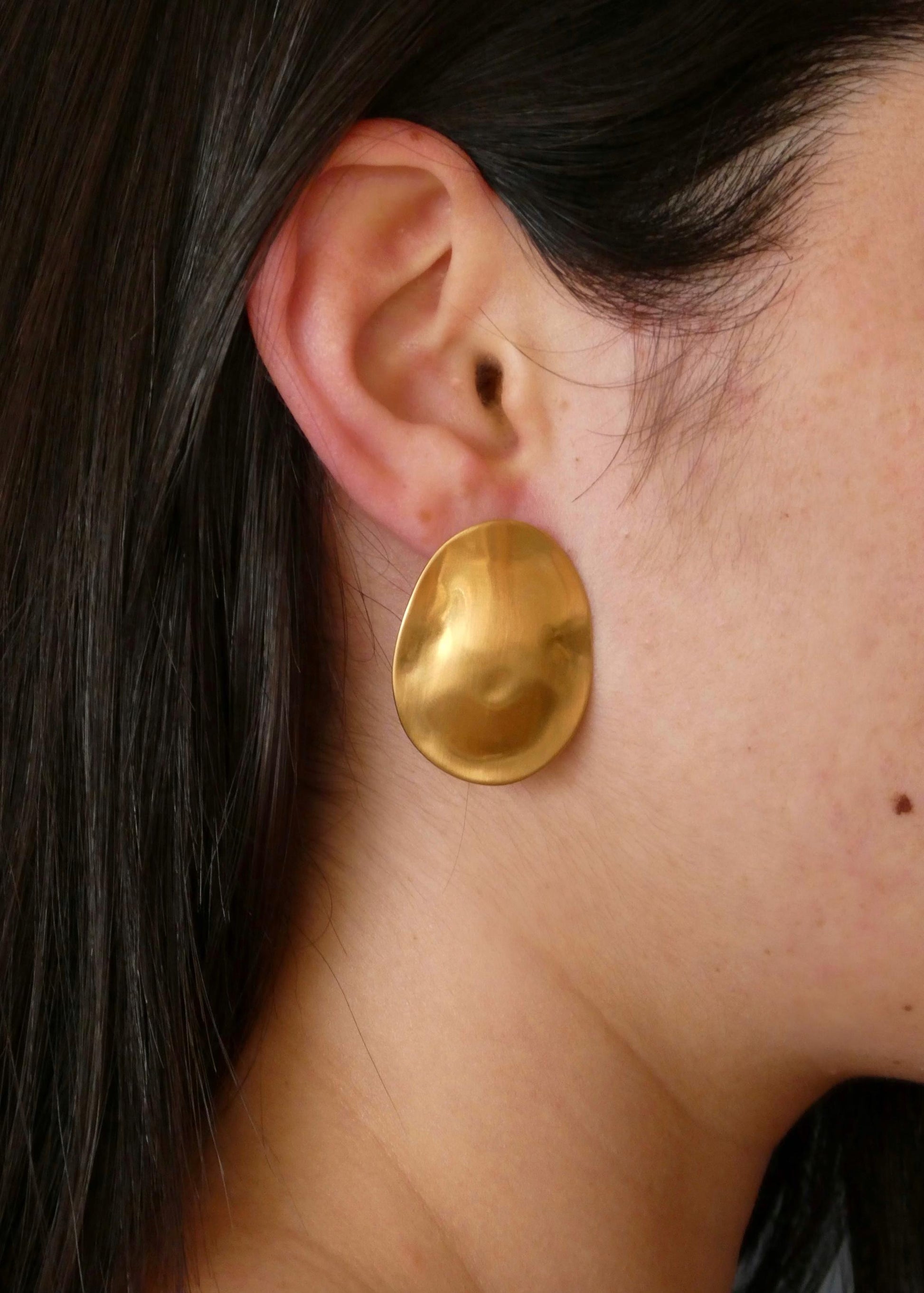 Aretes chapados en oro circulares.