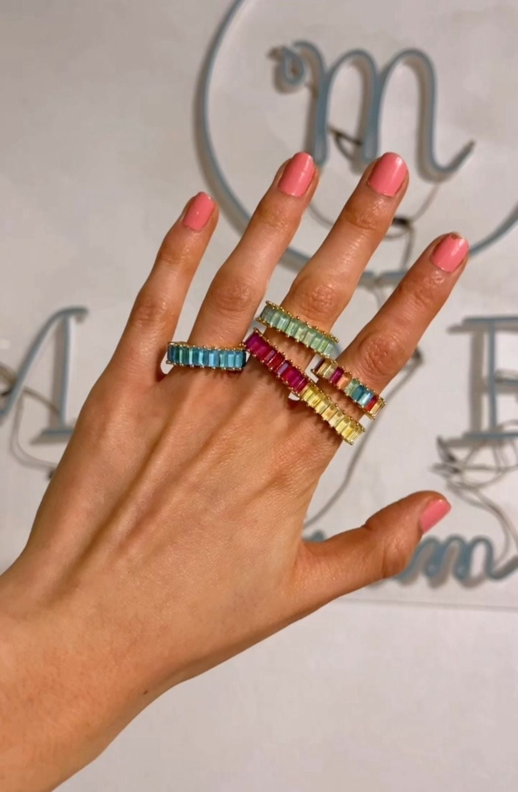 Anillo ajustable chapado en oro con imitación de cristales.