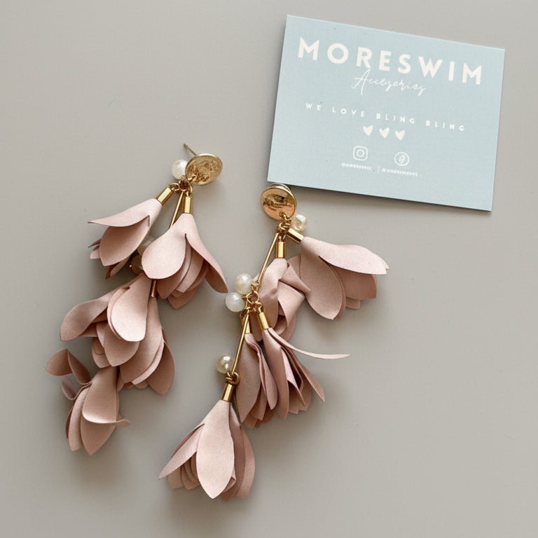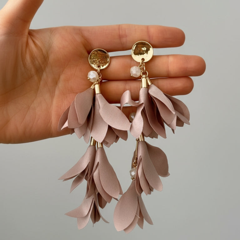 Aretes dorados de tela color palo rosa