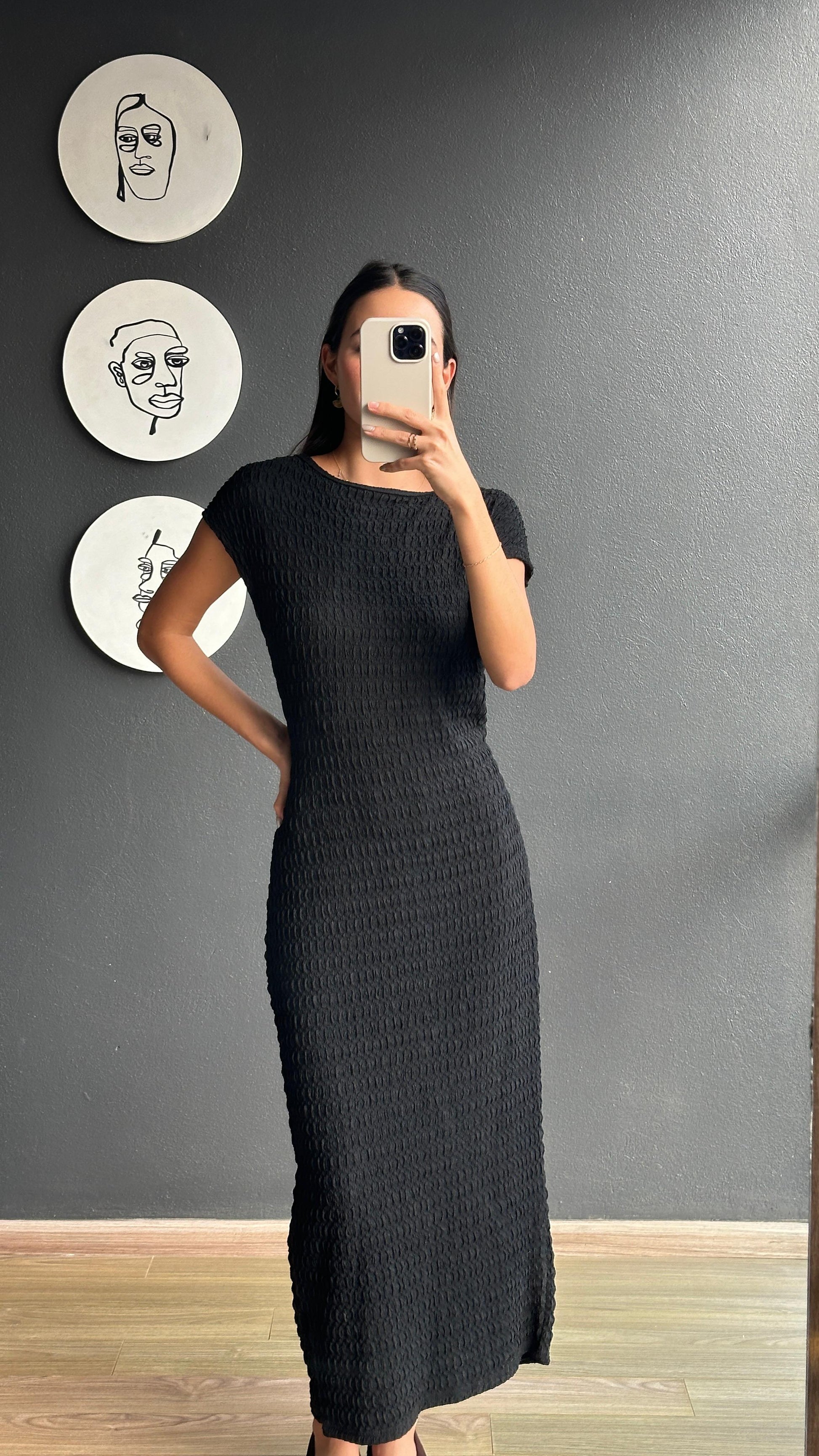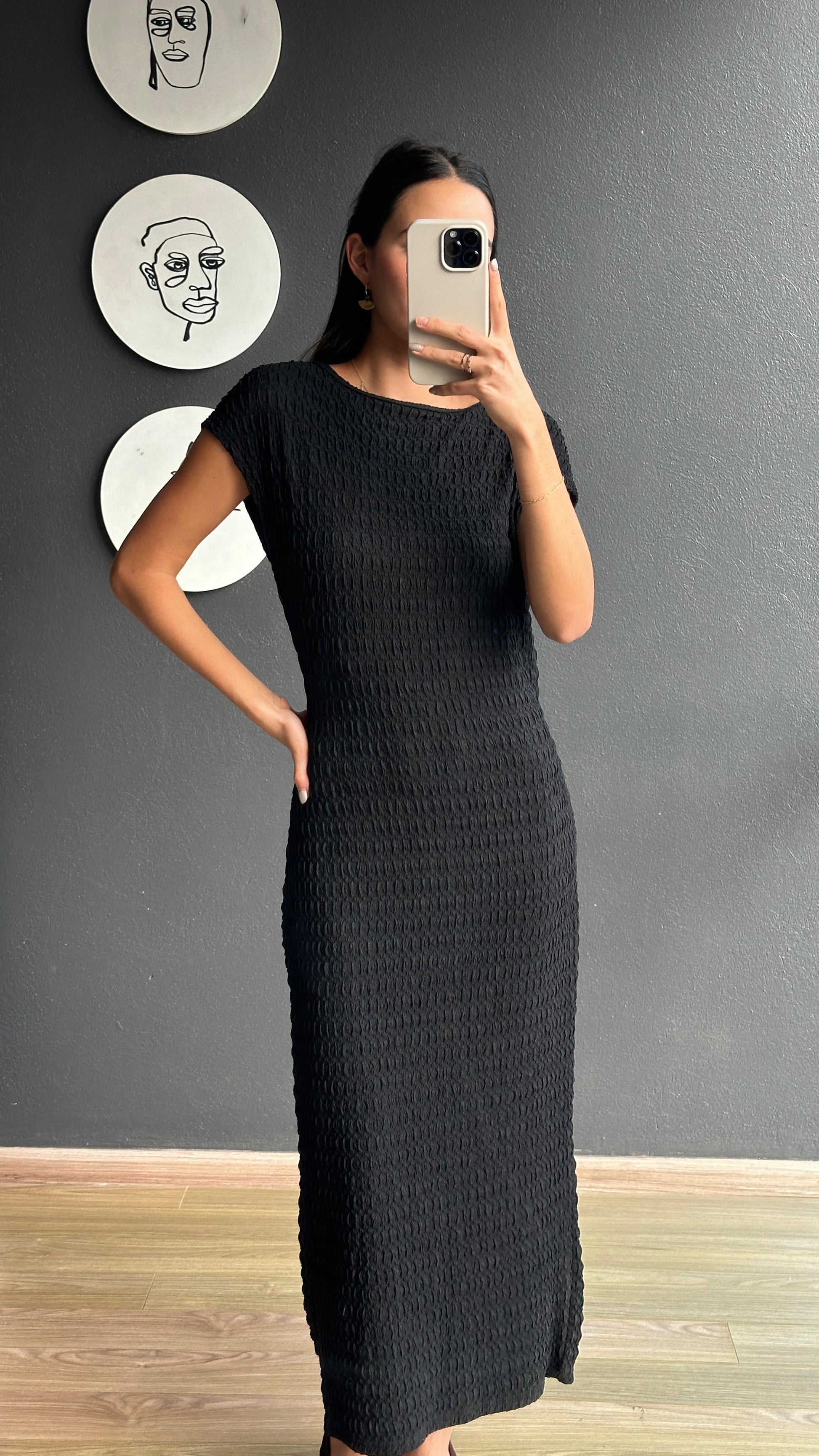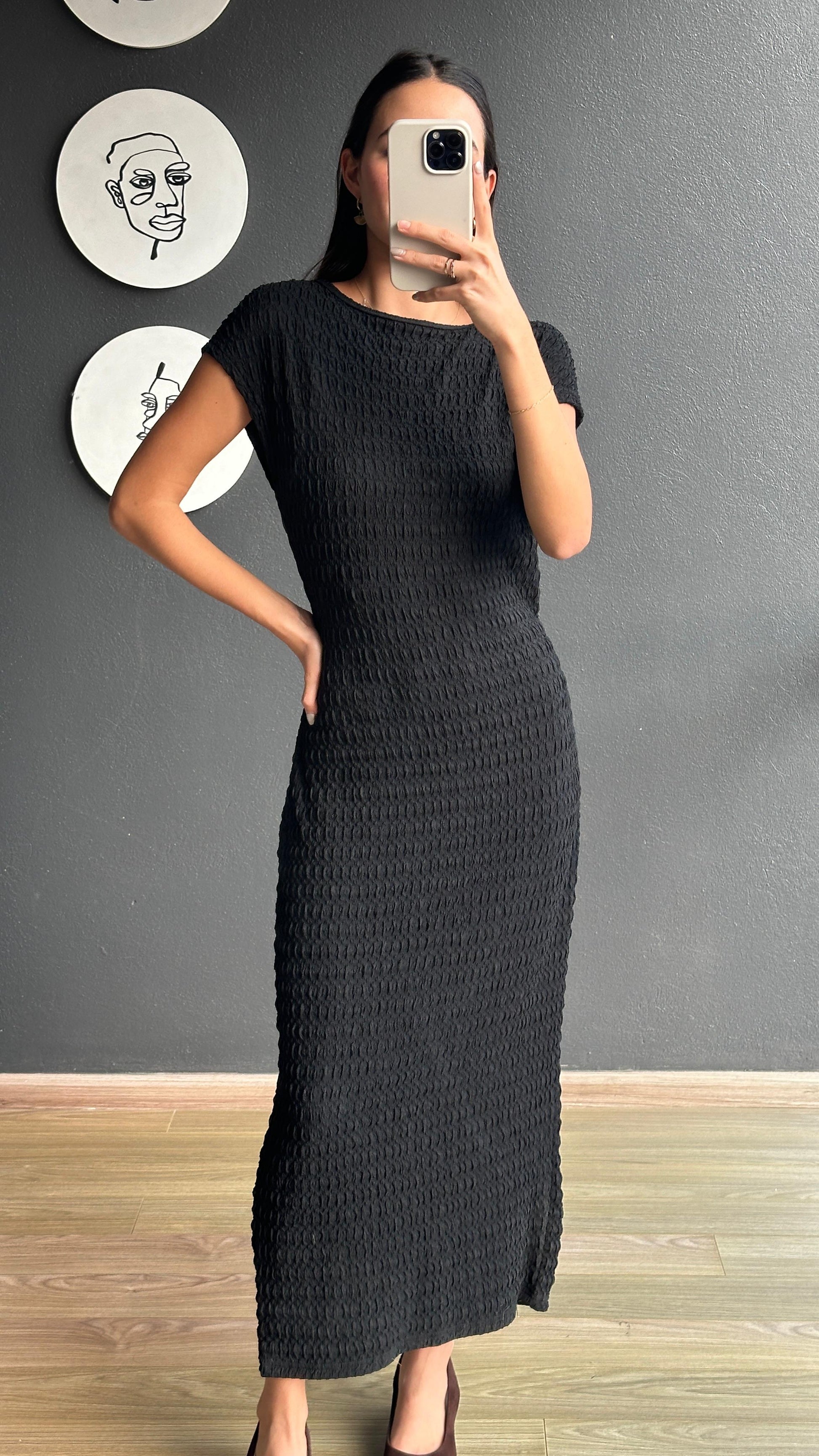 Vestido midi negro para uso casual o semi formal, muy comodo.