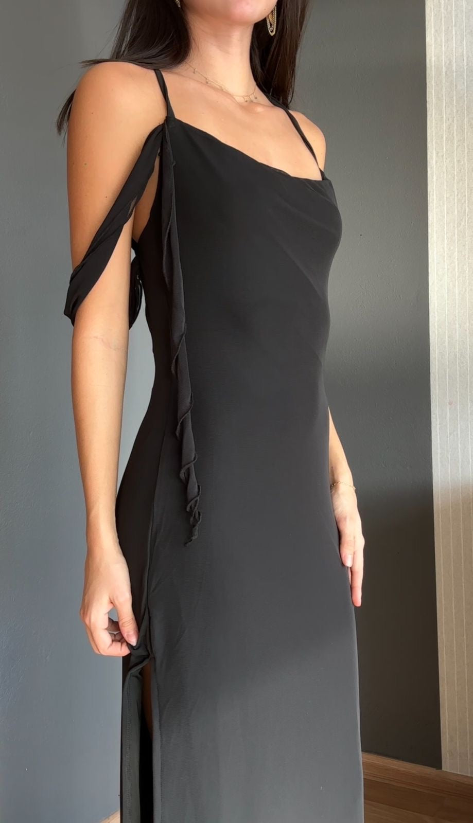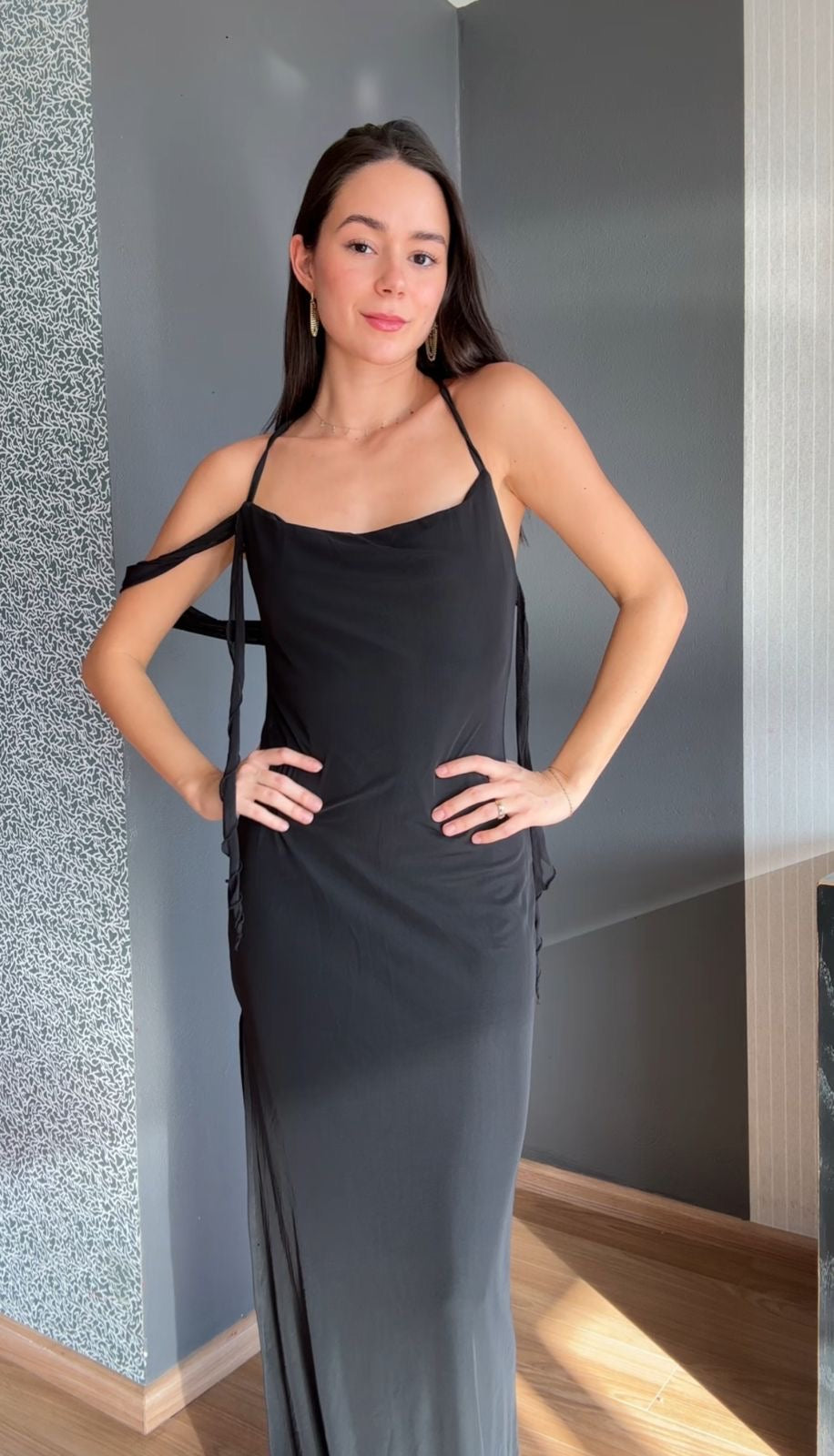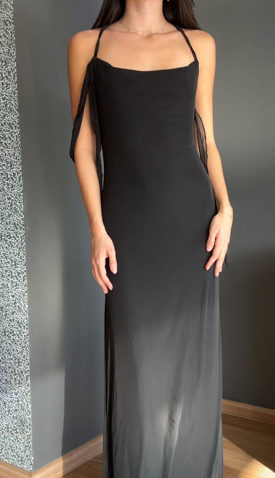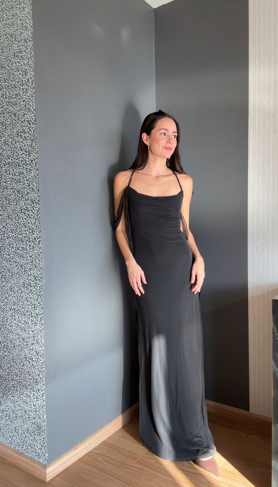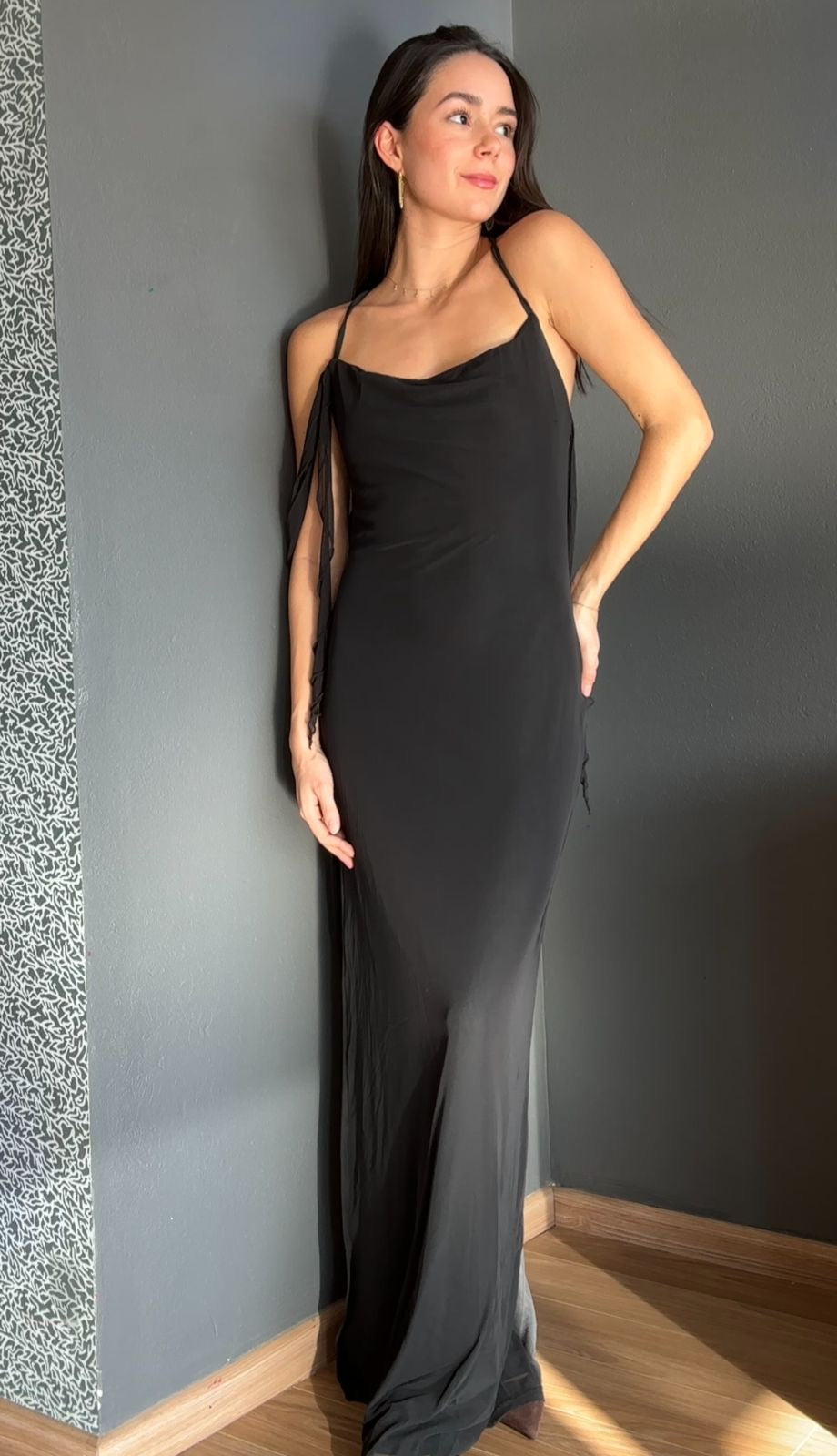 Vestido largo sin mangas con tirantes ajustables perfecto para evento de noche.