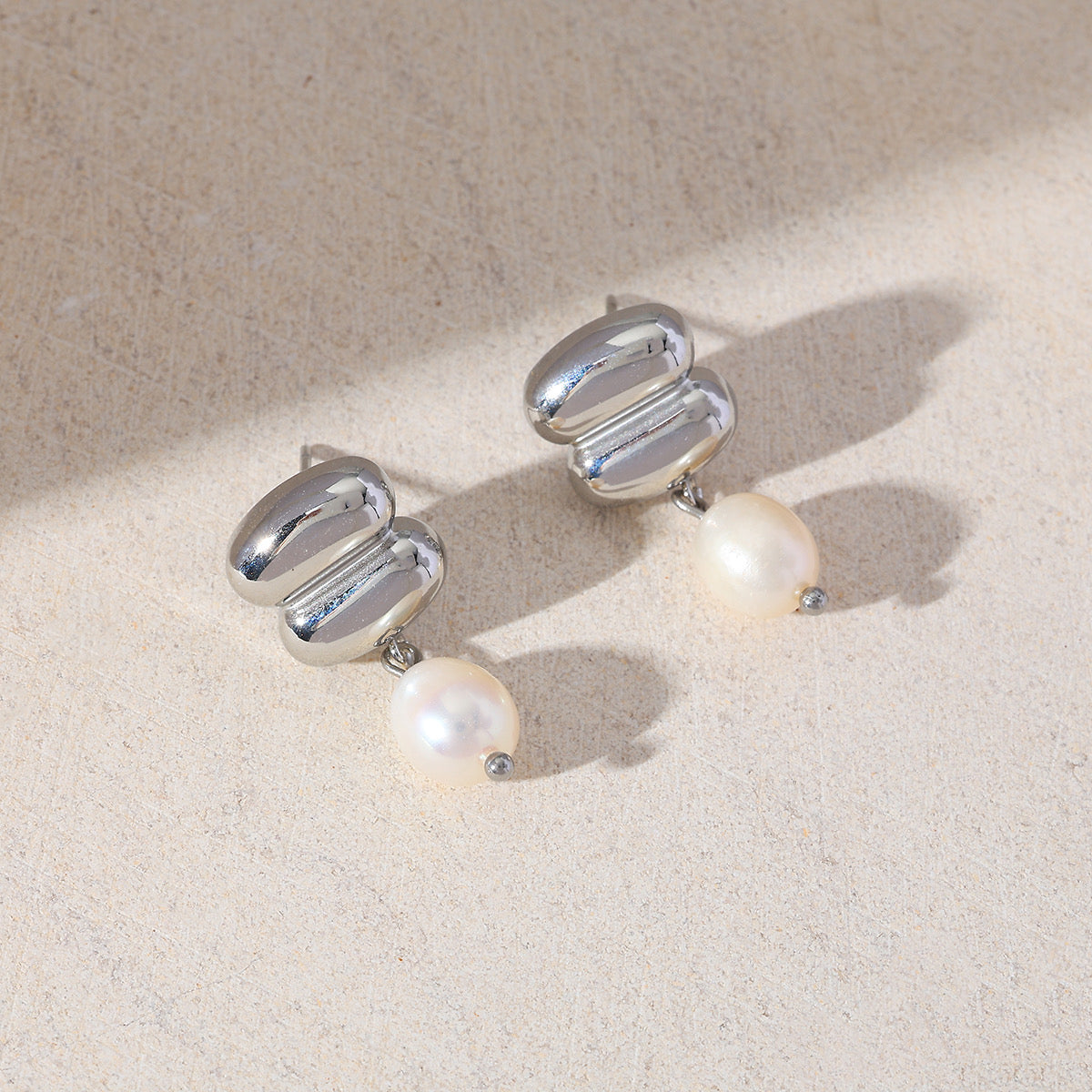 Aretes sencillos para uso diario. Chapa de oro con imitación de perla