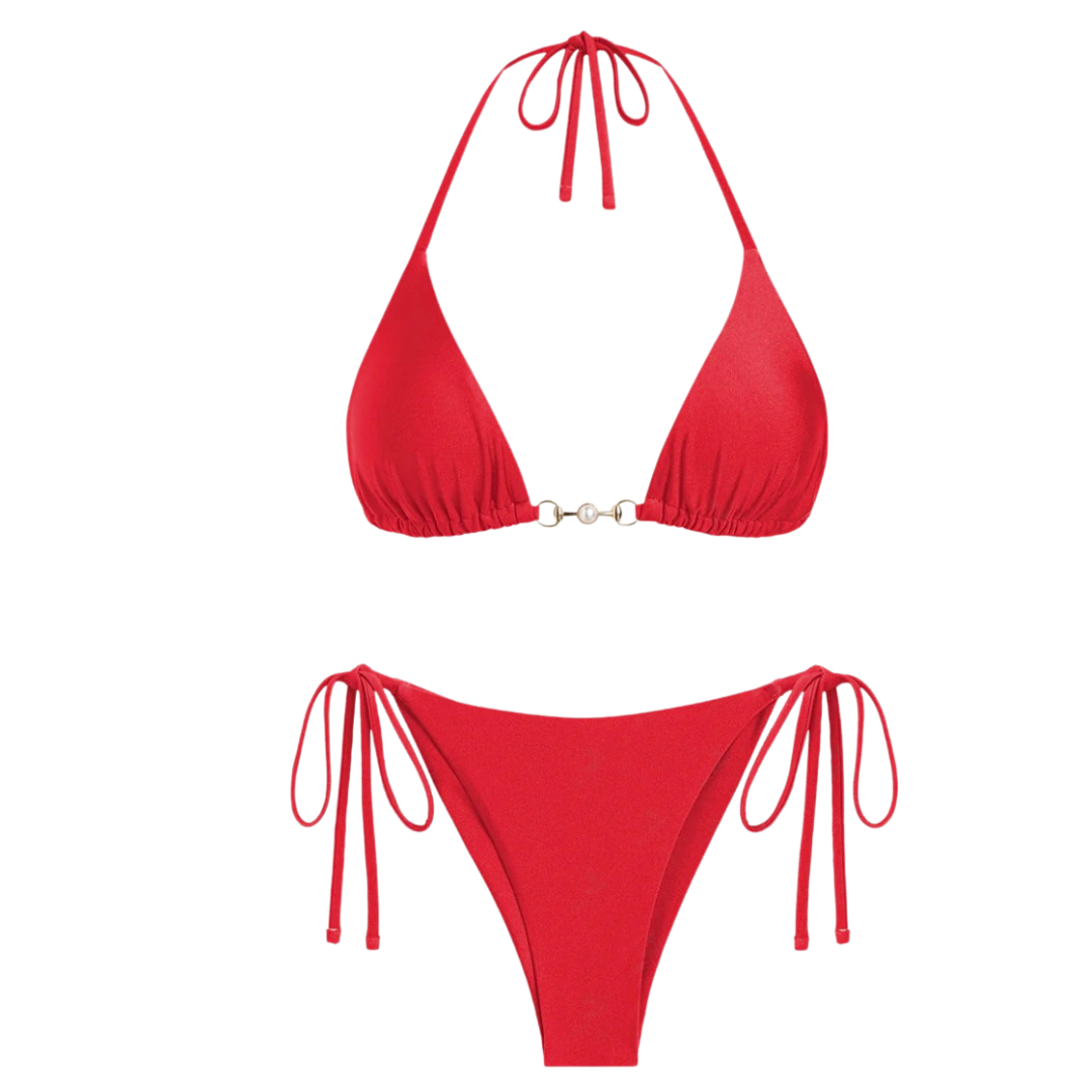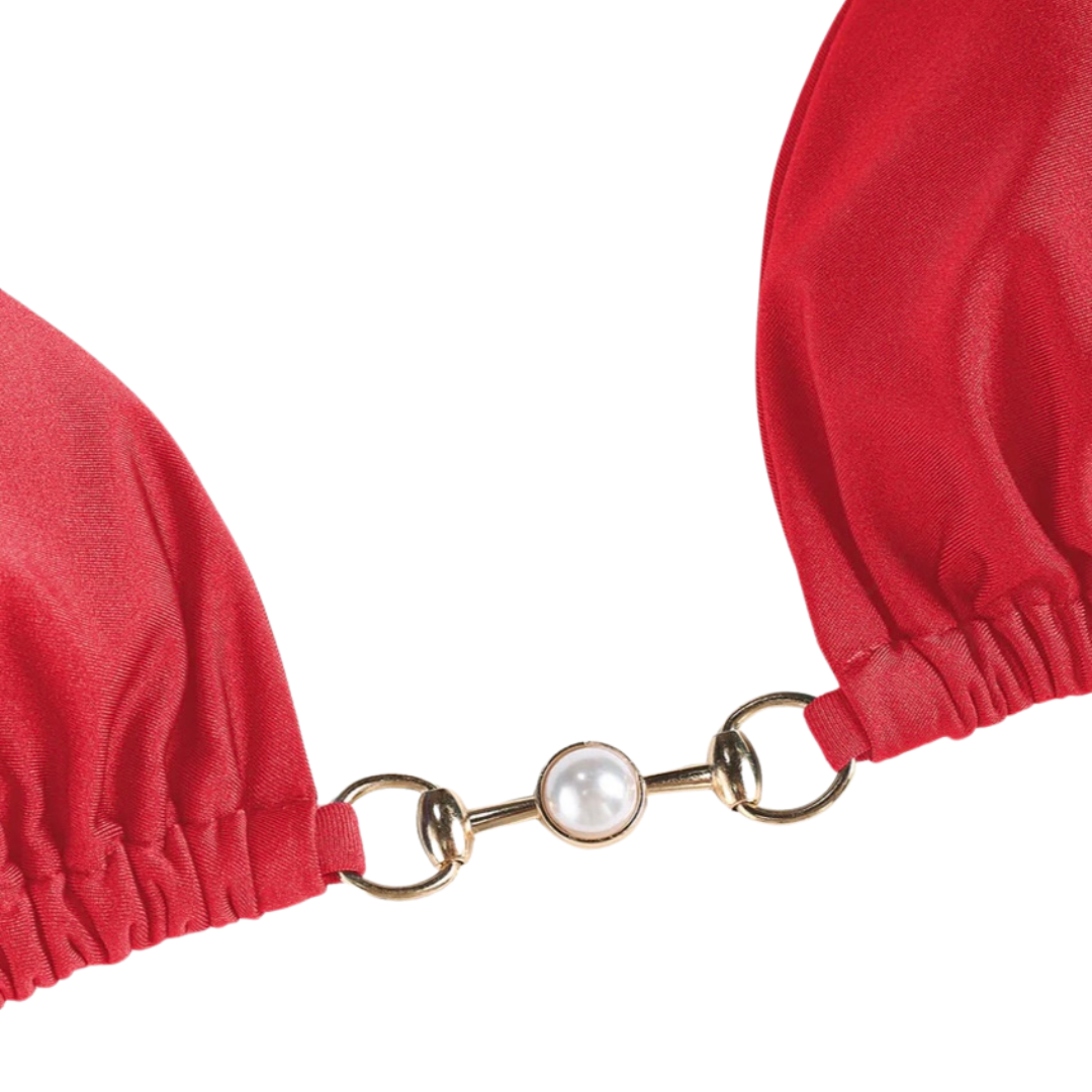 Bikini de dos piezas rojo ajustable.