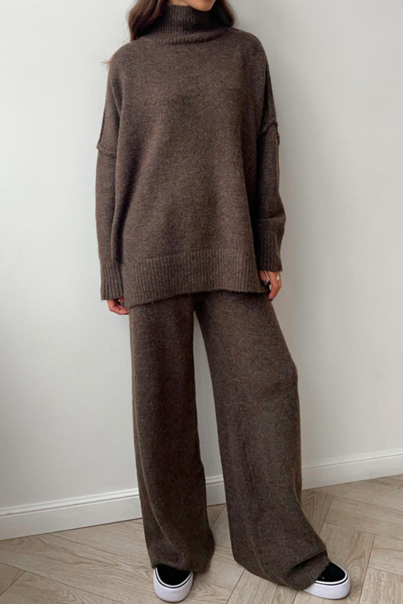 Conjunto tejido de punto grueso, cómodo y caliente. Un MUST para clima frío.